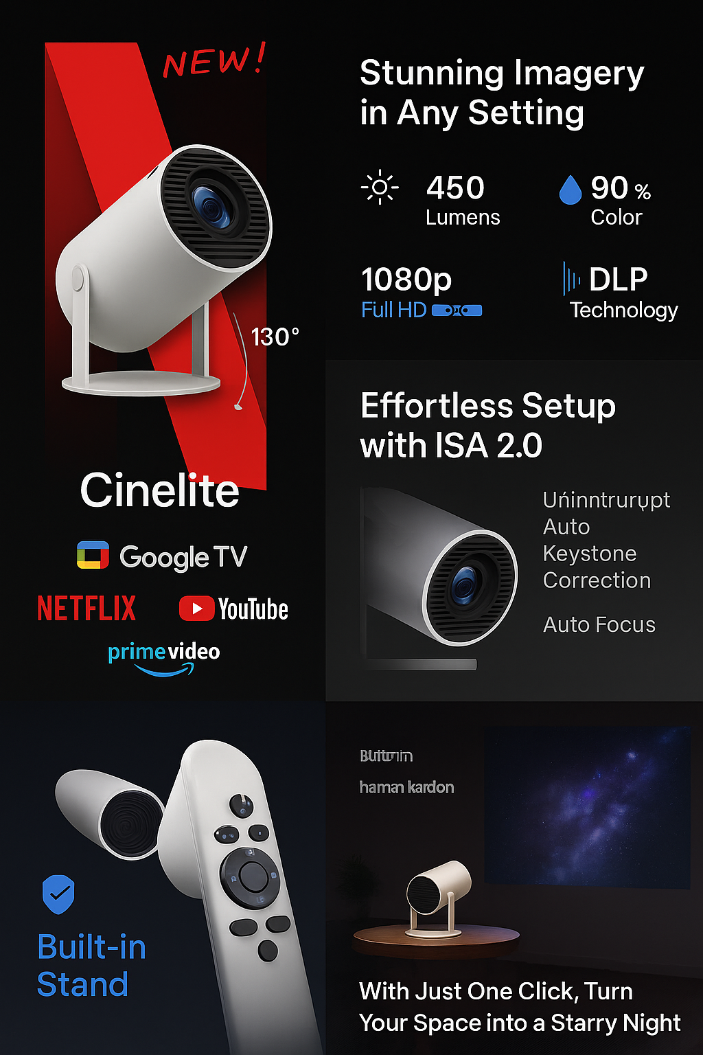 Friends gathered, laughter in the air, sharing snacks and cozy moments — all eyes on the big screen as your favorite movies and games come to life with the Cinelite Go projector. Perfect for movie nights, gaming marathons, or simply hanging out together in comfort.